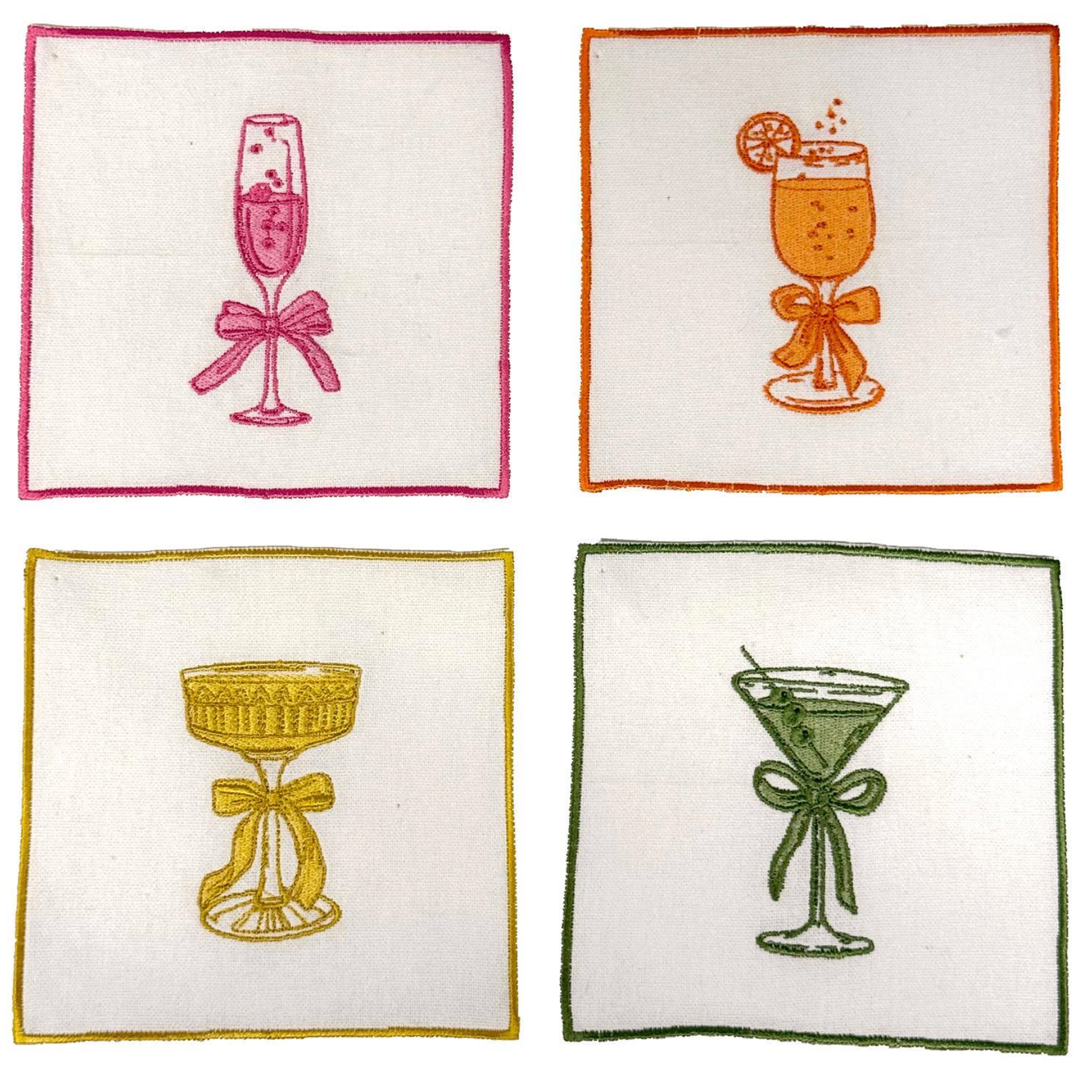 Cheers Set of 4 Embroidered Cocktail Napkins