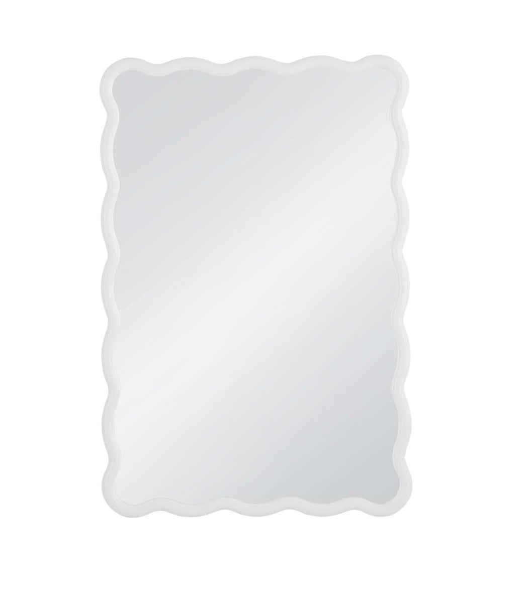 The Bryony Wall Mirror is an ideal accent to brighten your space, featuring a white lacquered mirror frame for a playful touch. Its wavy edges offer a fun twist on the traditional rectangular shape, adding personality to any room. Crafted with a white lacquered finish, this mirror effortlessly enhances your decor.