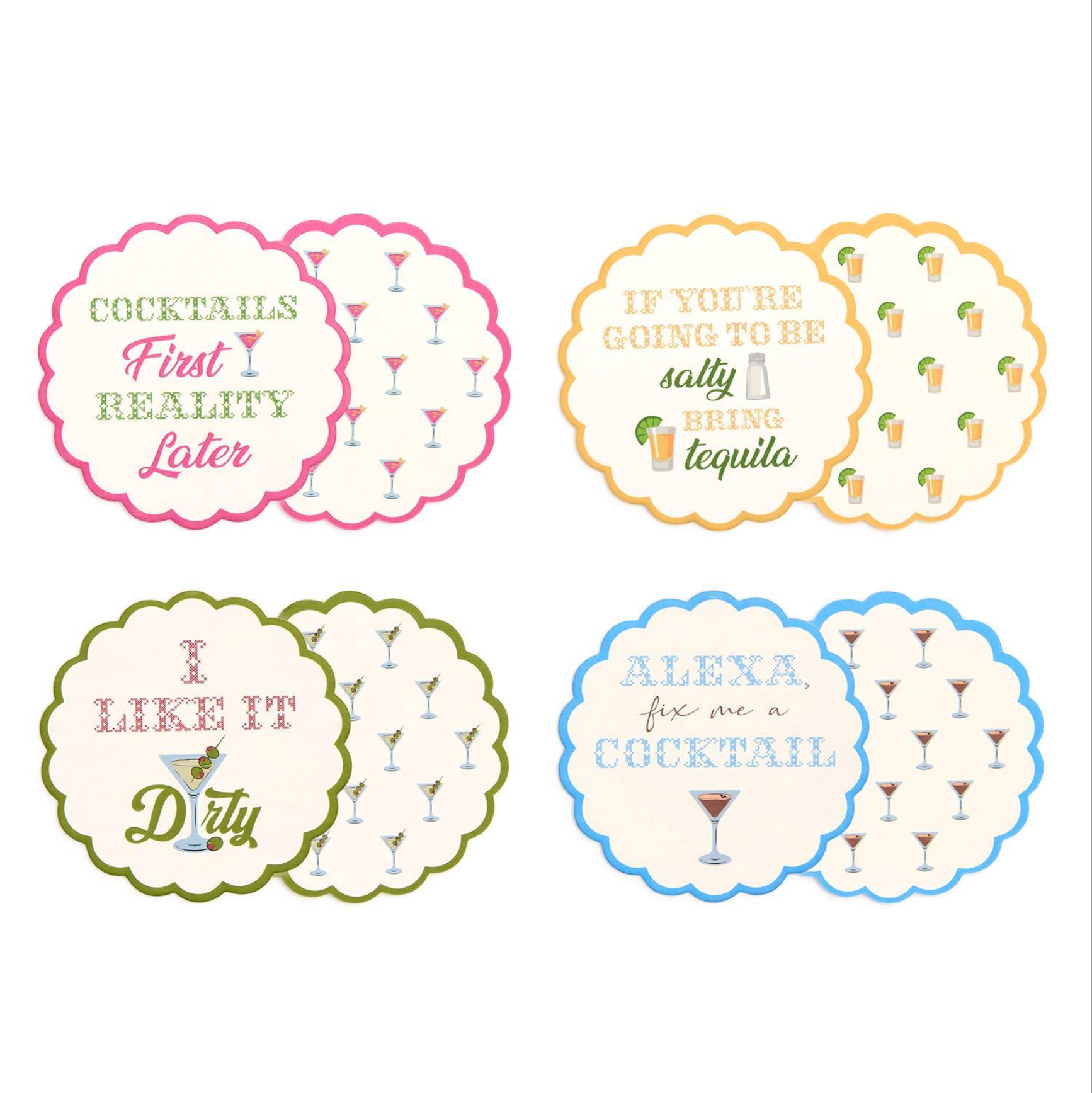 • Set of 24 coasters in 4 unique designs